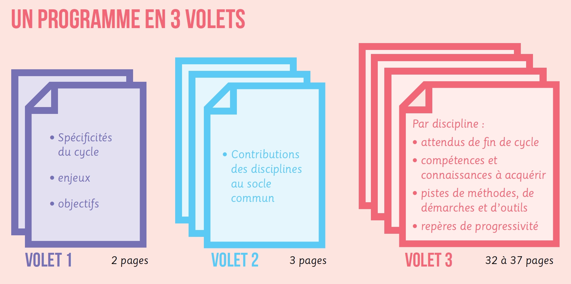 43 pages pour le cycle 2, 47 pour le cycle 3 sans compter les liens hypertextes et les annexes, une vingtaine de pages supplémentaires : ce projet de programmes est copieux. Le volet 3, celui qui doit guider les enseignants pour la mise en œuvre, apparaît parfois le plus confus et le plus difficile d'accès. Ces programmes doivent plus clairement indiquer les choix de ce qui doit être enseigné, mais également des attendus de fin de cycle clairs, en nombre limité et des repères de progressivité avec un niveau de détail adapté.